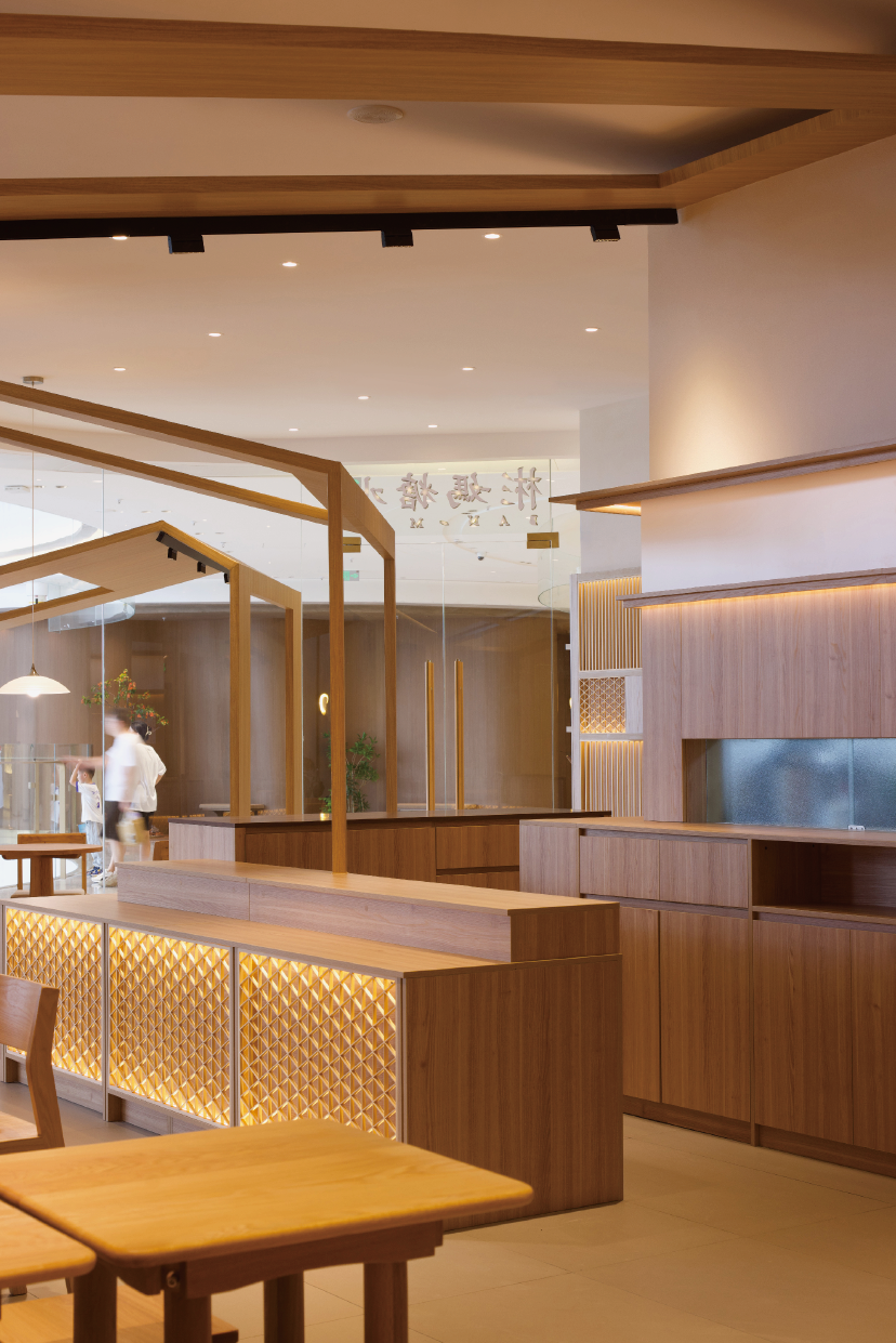 糖水作为广东一带的本土饮食方式,大多以市井街边的售卖方式为主。“彬妈糖水”以独立品牌身份在深圳超级总部睿印中心开设糖水店,面对更大的场地空间,结合品牌理念,我们提出“在院落里,在甜里”作为设计概念,以新的空间形态表达品牌气质。