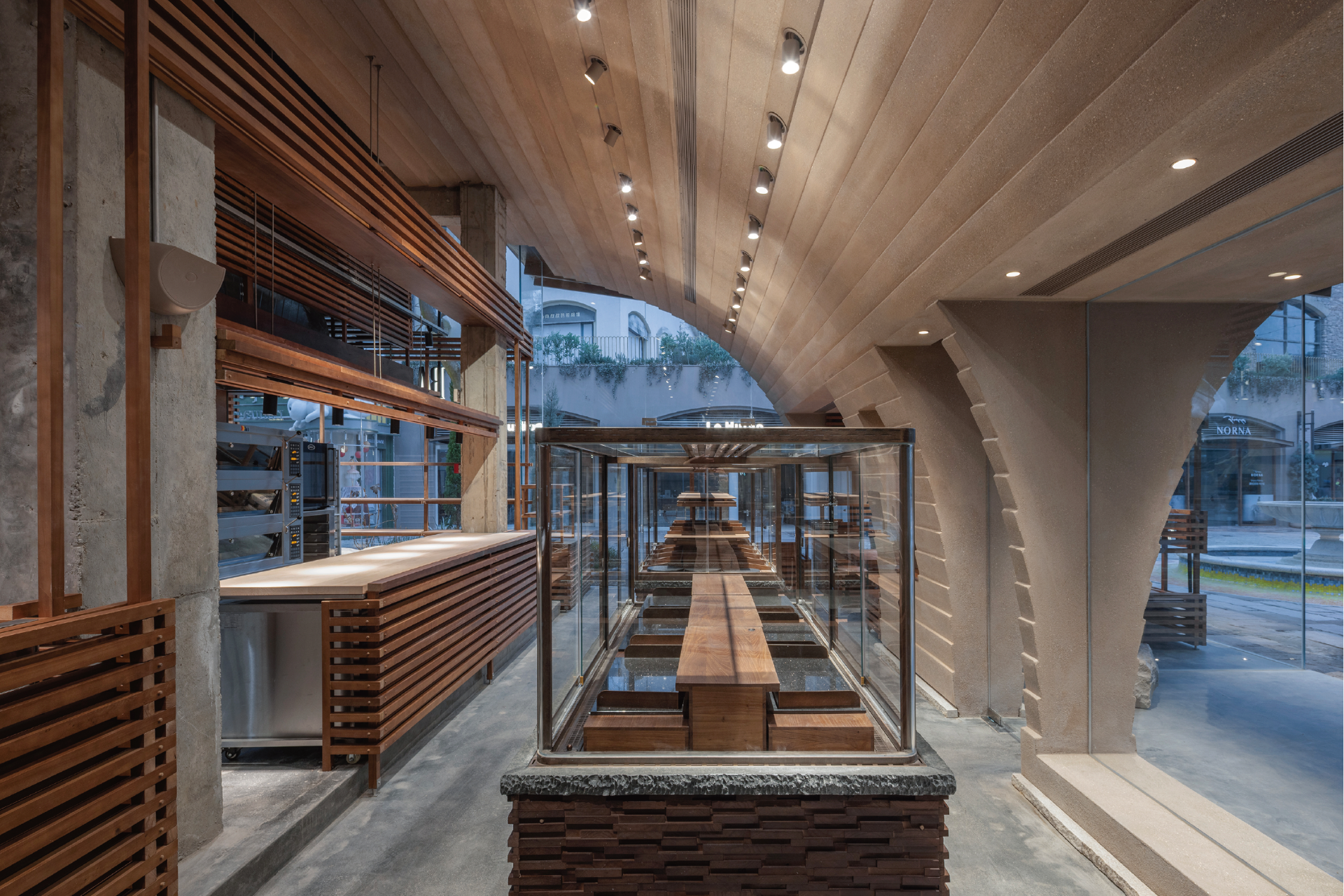 本次项目打破传统烘焙零售空间的设计路径;是以契合品牌生产哲学理念的一次当代转译与初次探索。对设计团队而言,酵舍的交付亦如发酵的开始,我们期待并观察空间未来与大众相遇后会孕育出何种未知的“风味”。