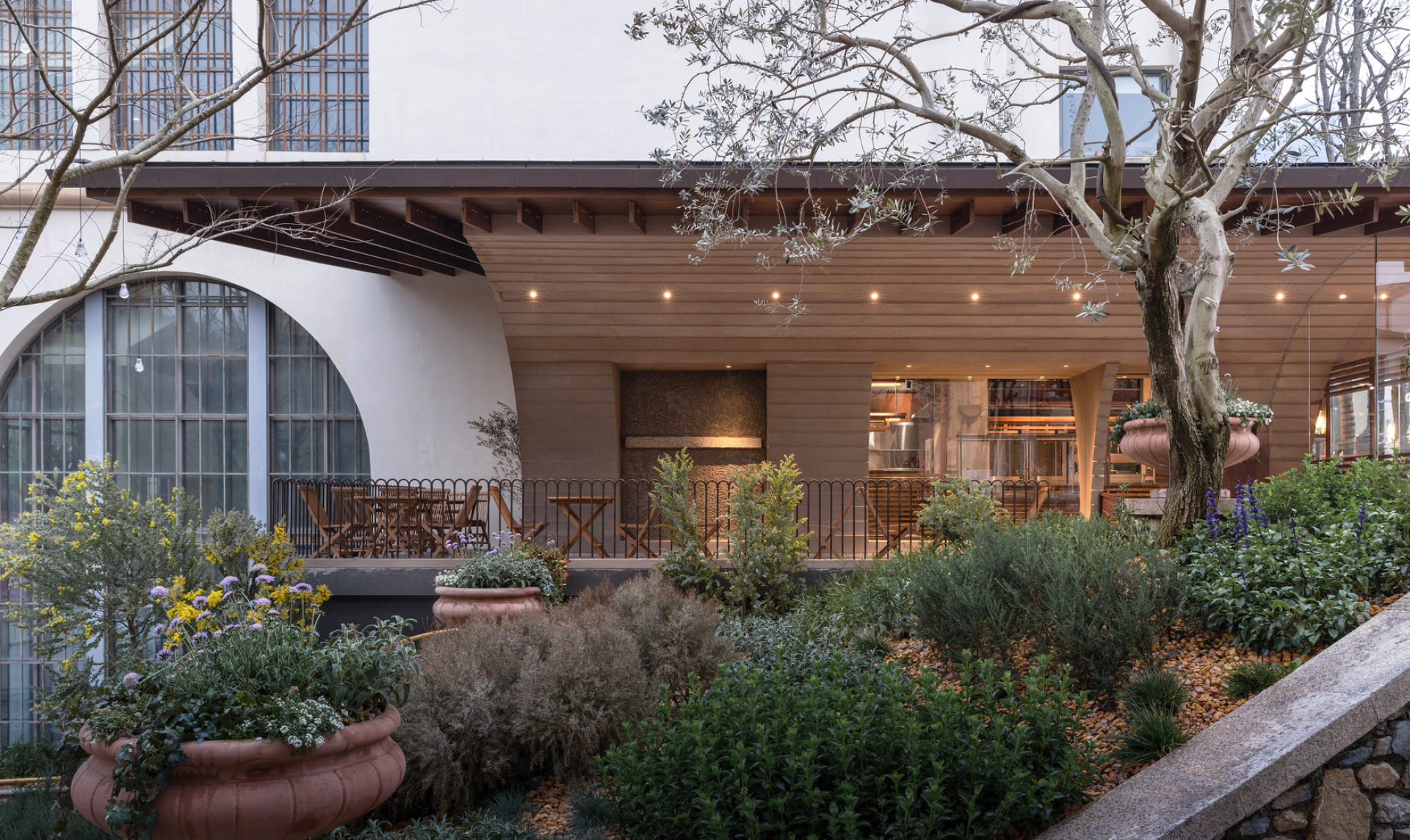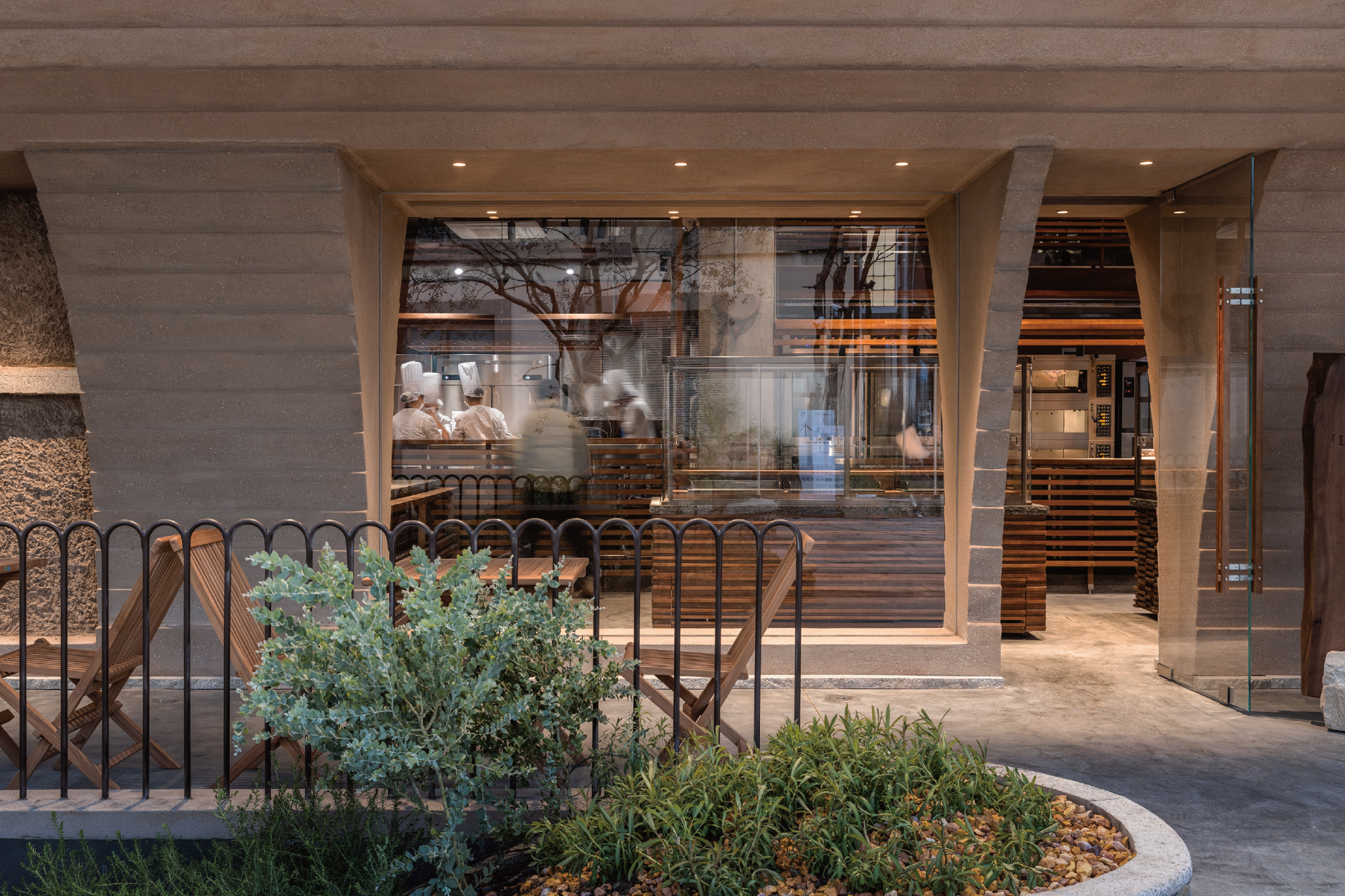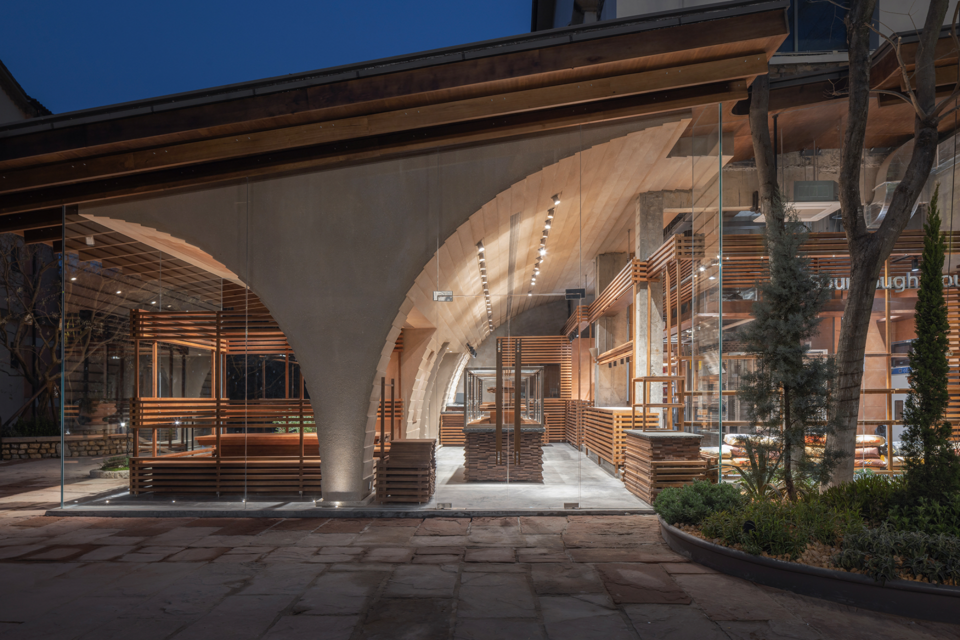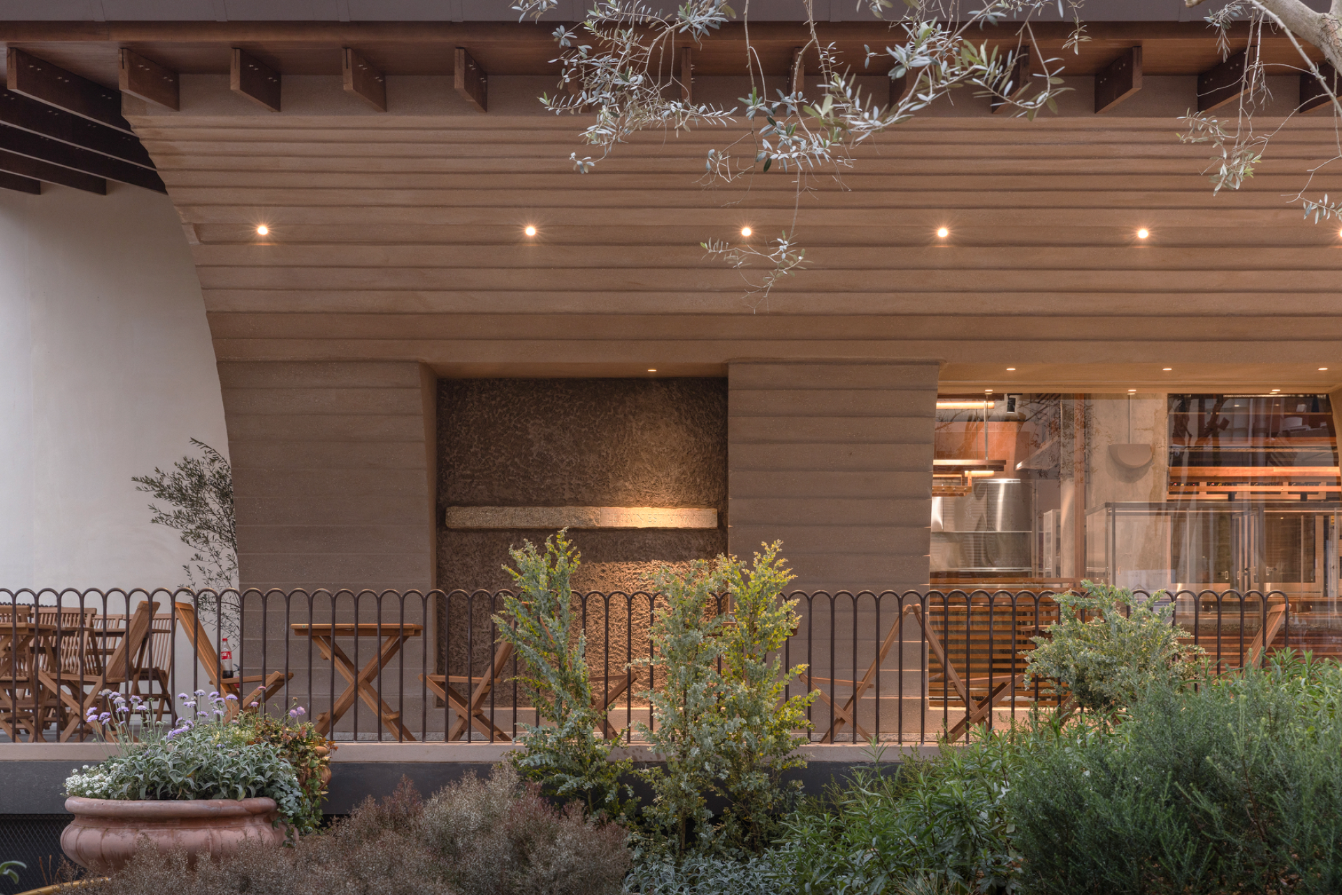 烘焙生产中的慢发酵工艺,源自欧洲。在西语中“酸面种”的另外一个词也叫“酵母种”。设计由此决定,以隐喻的母体般的建筑形态致敬生命。让发酵与时间对话,孕育新的风味与能量。屋檐之下生成具有包裹性的双向拱形空间,同时从功能上划分出室内与室外。自然地承载慢发酵的生产方式与街区日常的慢生活方式。
